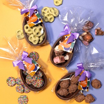 Choose from Rocky Road, Pistachio Pretzel, Coconut Rough Cluster or Specklies. Each half egg is packed with texture and flavour, designed to break, share and enjoy together.